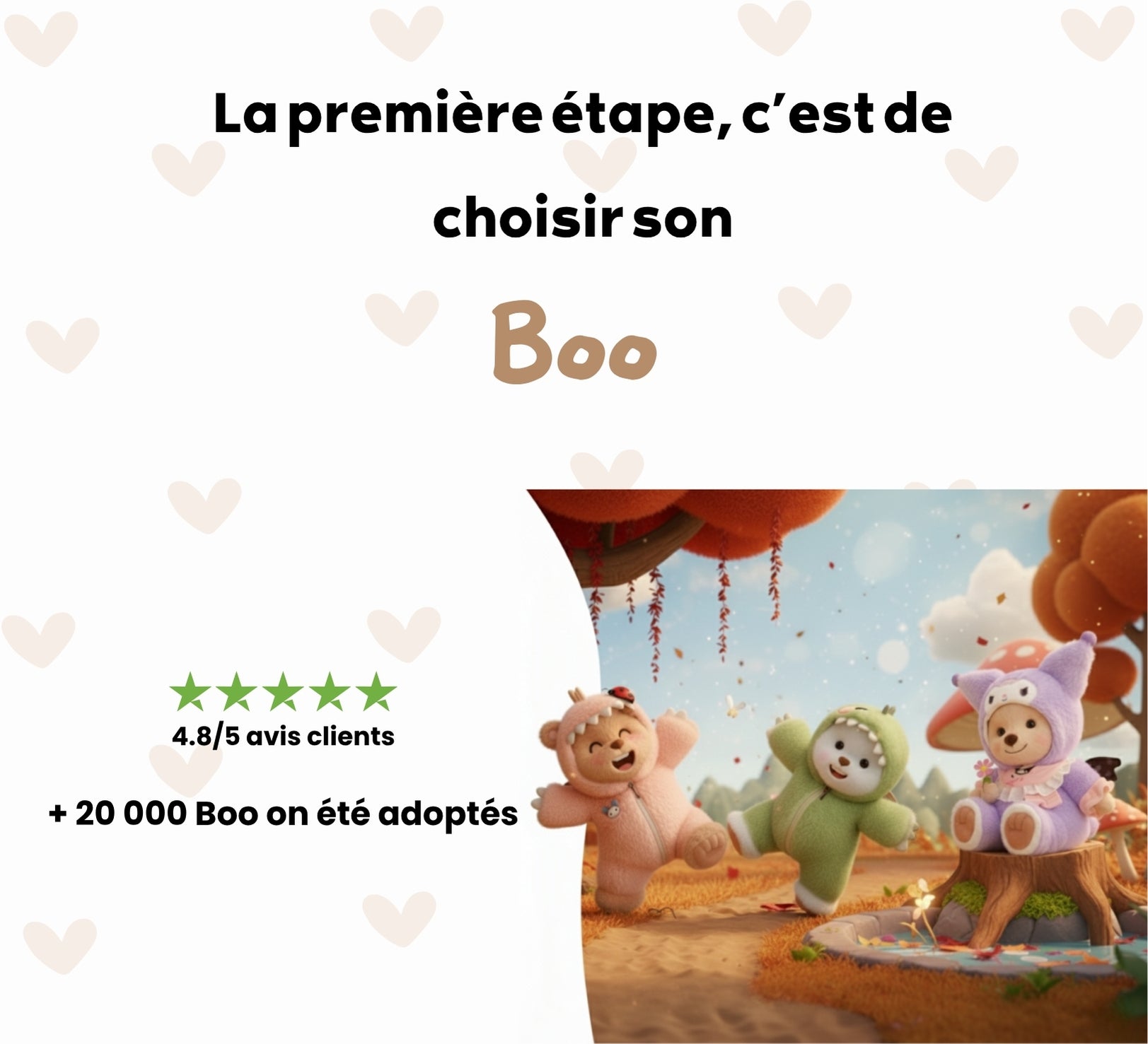 "Enfin une peluche qui ne reste pas dans un coin ! Ma fille s’amuse chaque jour à inventer des histoires avec son Boo. C’est bien plus qu’un jouet, c’est un ami."