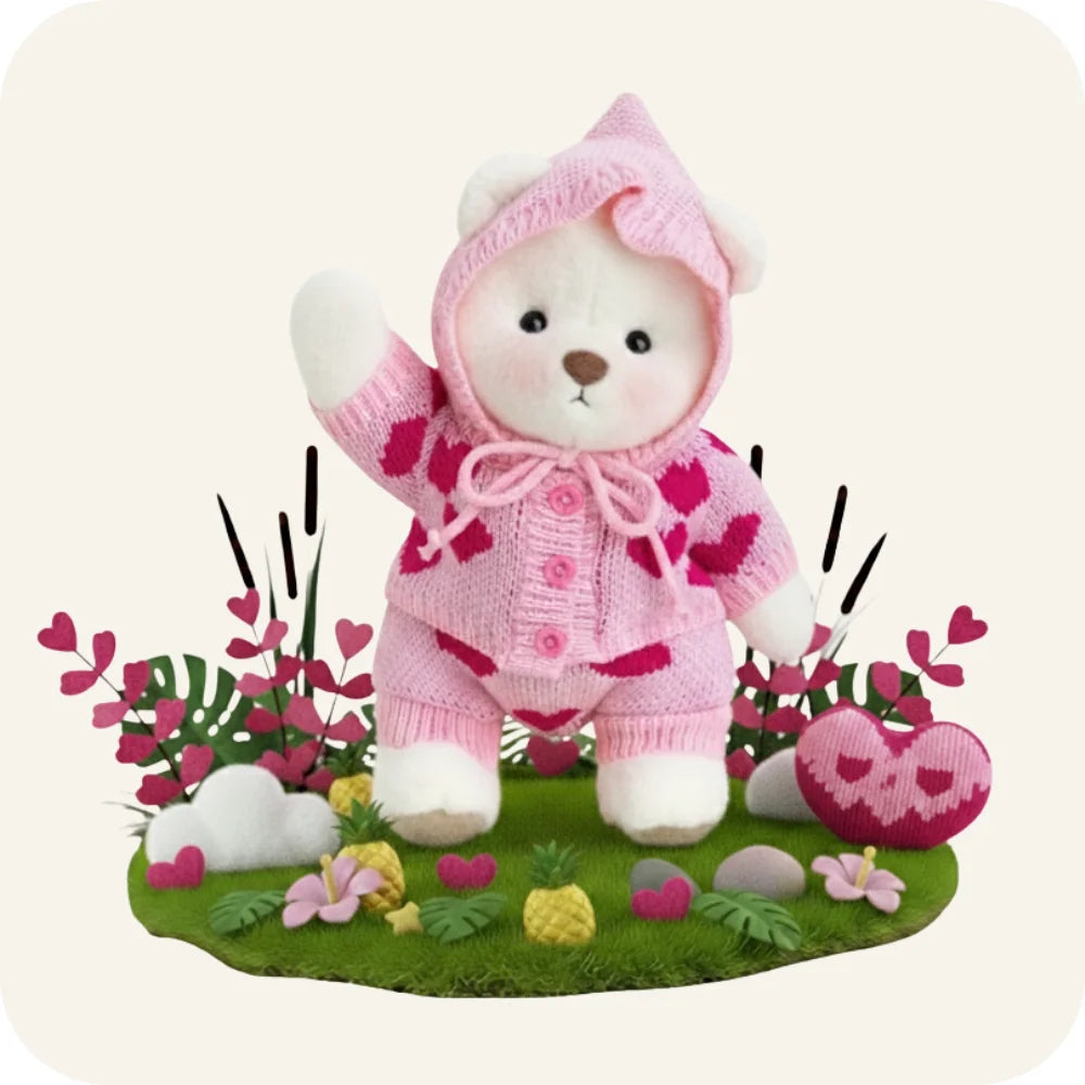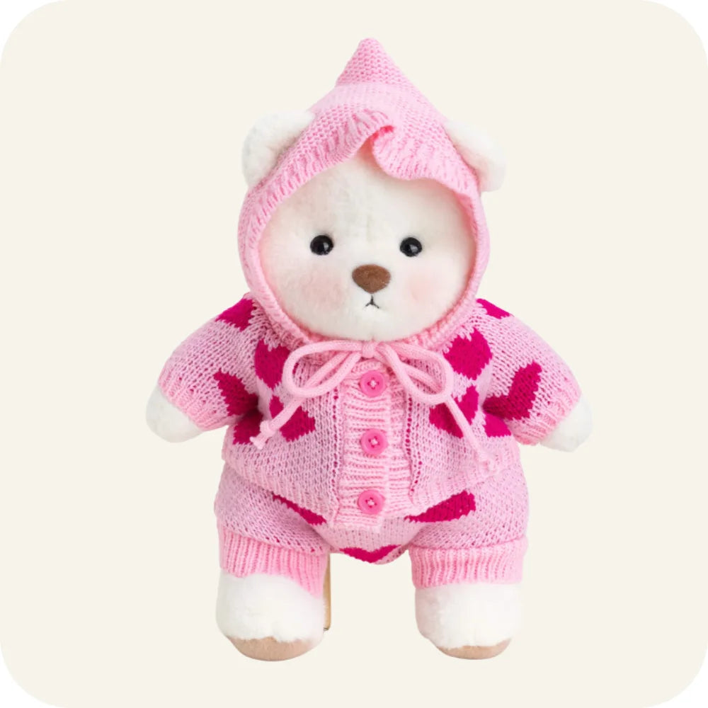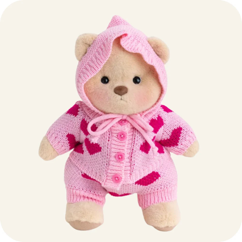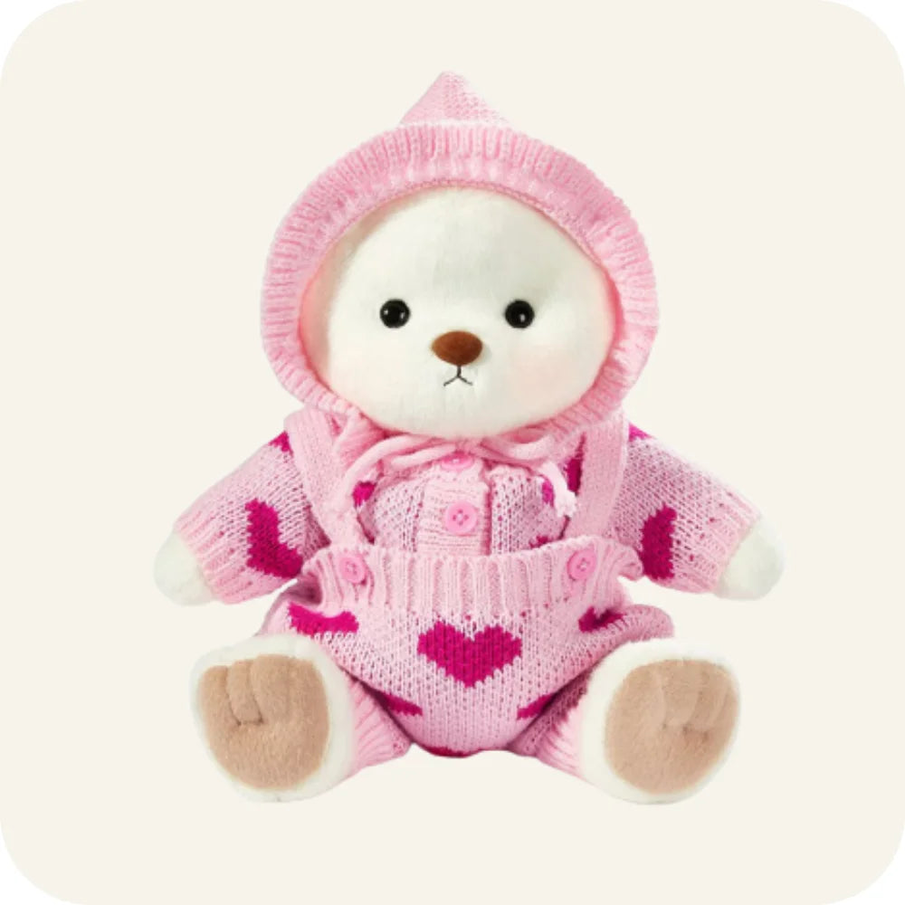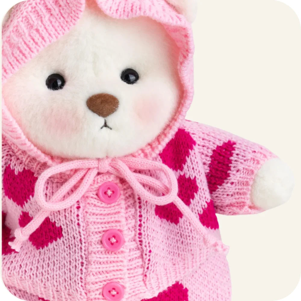 Moi c’est Boo 💖 ! Contrairement aux peluches classiques, je peux changer de tenues pour m’adapter à toutes tes envies. Chaque style raconte une nouvelle histoire.